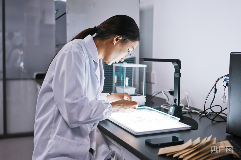 科研人員在實驗室進行考種工作(央廣網記者 張羲輪 攝)