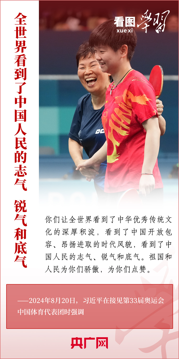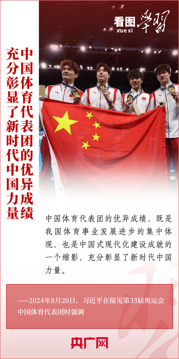 “祖國和人民為你們驕傲,為你們點贊。”8月20日,習(xí)近平總書記在人民大會堂接見第33屆奧運會中國體育代表團并發(fā)表重要講話??倳浉叨瓤隙ㄖ袊w育代表團取得的優(yōu)異成績,贊揚他們充分彰顯了新時代中國力量、生動詮釋了新時代中國精神、充分展現(xiàn)了新時代中國形象,勉勵大家戒驕戒躁、再接再厲,為建設(shè)體育強國再立新功。一起來學(xué)習(xí)!