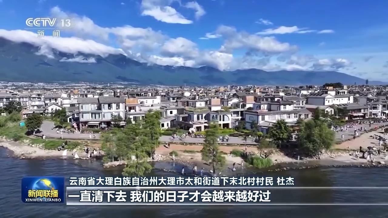 云南省大理白族自治州大理市太和街道下末北村村民 杜杰:我們村的人去洱海,如果看到垃圾他們會去撿。政府對洱海保護(hù)的決心力度是很大的,現(xiàn)在慢慢把我們村民也感化了,一定要保護(hù)好洱海,洱海水清了,一直清下去,我們的日子才會越來越好過。