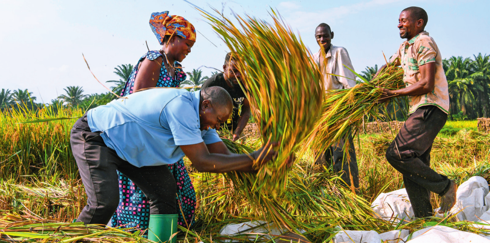 2018 年,中國(guó)農(nóng)業(yè)專(zhuān)家組在布隆迪布班扎省吉漢加縣設(shè)立首個(gè)水稻減貧示范村。圖為當(dāng)?shù)剞r(nóng)戶(hù)在稻田里給雜交水稻脫粒(2023年6月20日攝) 韓旭攝 / 本刊