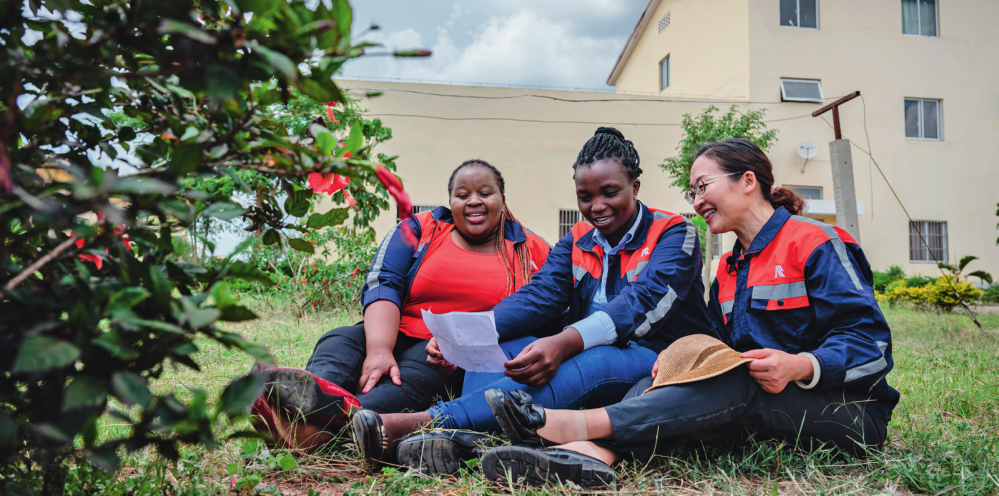 在肯尼亞內(nèi)羅畢,非洲之星鐵路運(yùn)營(yíng)公司工電部電子設(shè)備檢修工區(qū)工長(zhǎng)陳玲(右)在休息時(shí)教學(xué)員唱中文歌曲(2023年5月23日攝) 王冠森攝 / 本刊