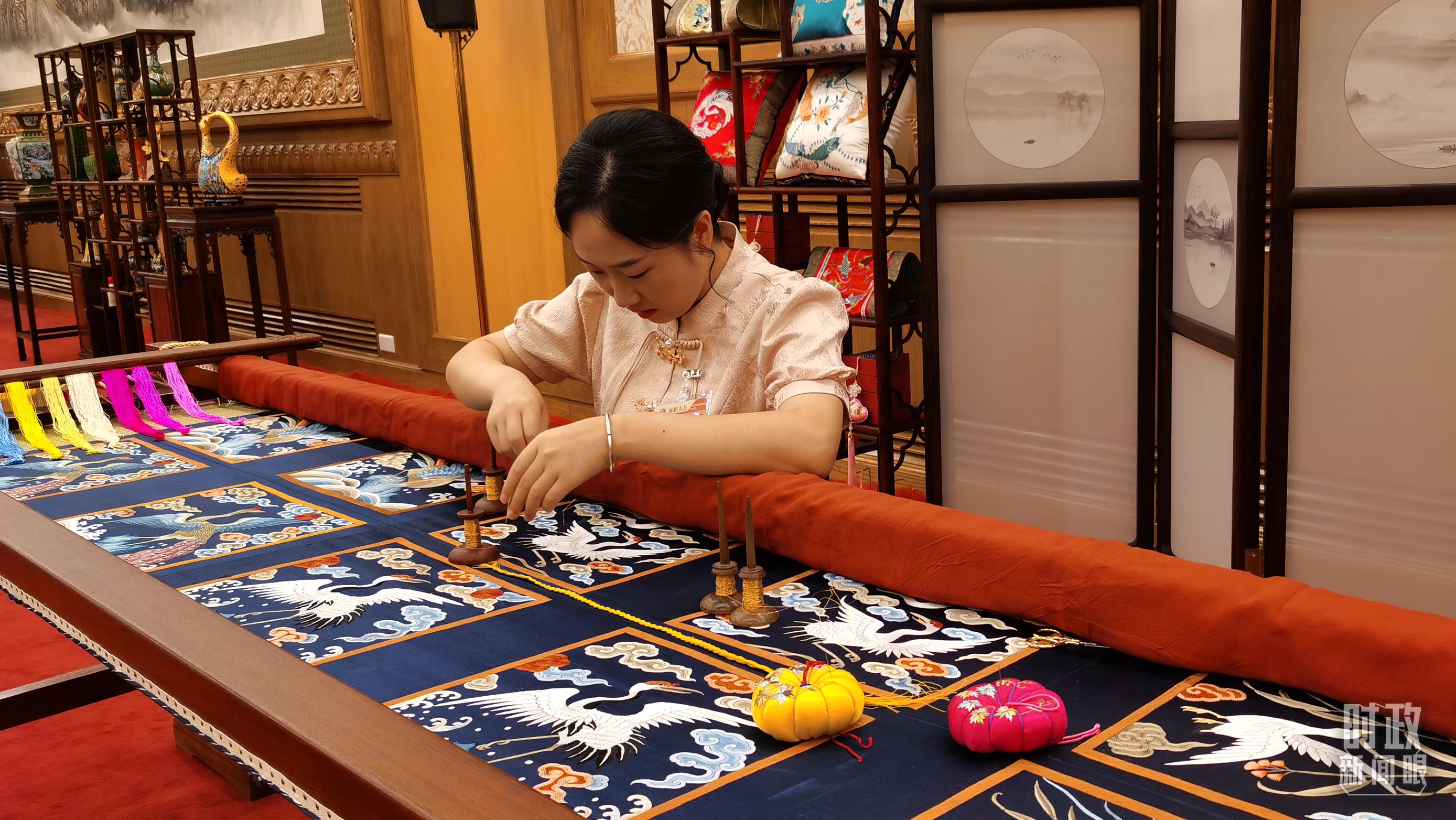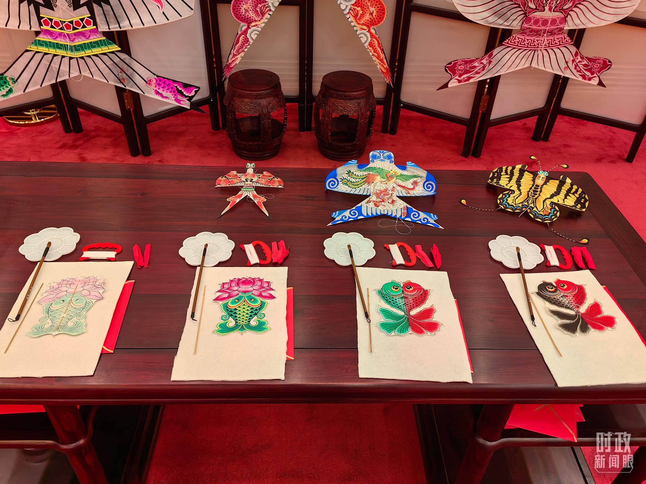 外賓休息室內(nèi)的非遺展示。(總臺央視記者王曉東、郭鴻拍攝)