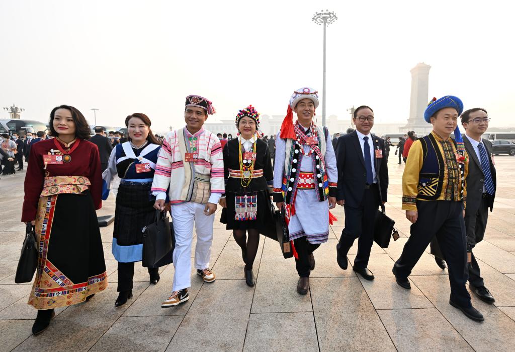 2023年3月5日,第十四屆全國(guó)人民代表大會(huì)第一次會(huì)議在北京人民大會(huì)堂開幕。這是全國(guó)人大代表走向會(huì)場(chǎng)。 新華社記者 陳益宸 攝