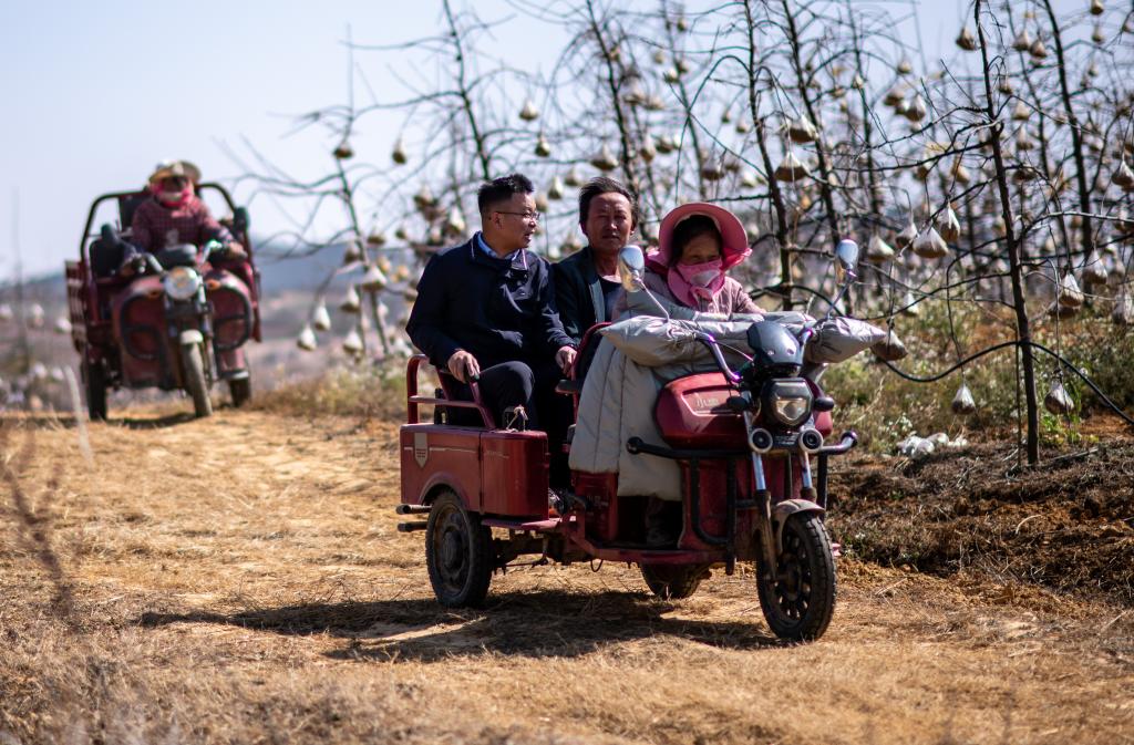全國(guó)人大代表袁海波(右三)在云南省曲靖市馬龍區(qū)一種植基地了解務(wù)工人員就業(yè)需求(2023年2月11日攝)。 新華社記者 江文耀 攝