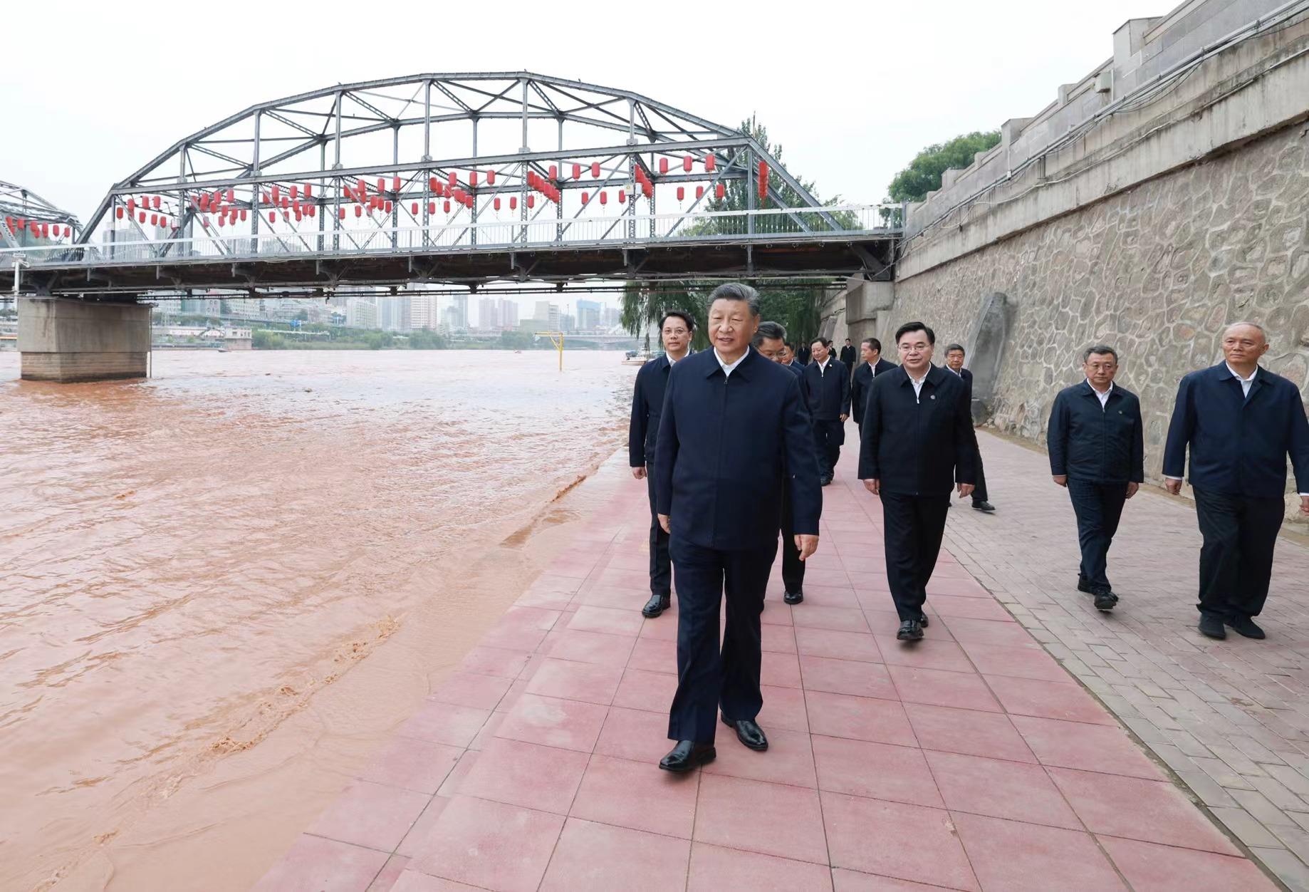9月11日下午,甘肅蘭州市黃河蘭州中山橋段,習(xí)近平總書記了解當(dāng)?shù)赝苿?dòng)黃河流域生態(tài)保護(hù)等情況。