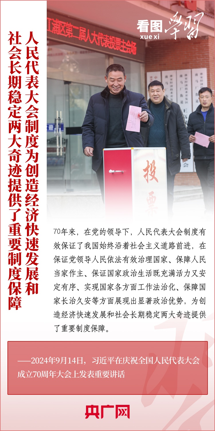 9月14日,習(xí)近平總書(shū)記出席慶祝全國(guó)人民代表大會(huì)成立70周年大會(huì)并發(fā)表重要講話??倳?shū)記在講話中深刻闡述了人民代表大會(huì)制度的顯著政治優(yōu)勢(shì),系統(tǒng)總結(jié)了新時(shí)代人民代表大會(huì)制度理論和實(shí)踐創(chuàng)新重大成果,對(duì)新征程上堅(jiān)持好、完善好、運(yùn)行好人民代表大會(huì)制度作出全面部署、提出明確要求。一起來(lái)學(xué)習(xí)!