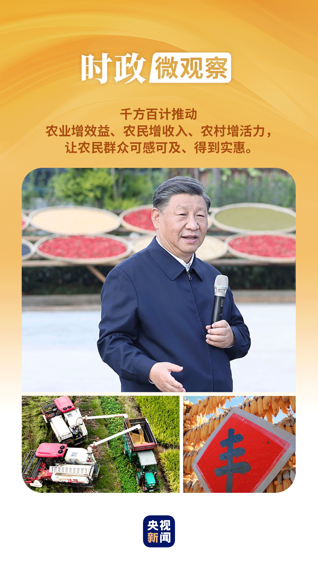 在第七個“中國農(nóng)民豐收節(jié)”到來之際,習近平總書記代表黨中央,向全國廣大農(nóng)民和工作在“三農(nóng)”戰(zhàn)線上的同志們致以節(jié)日祝賀和誠摯問候,對于堅持不懈夯實農(nóng)業(yè)基礎(chǔ),推進鄉(xiāng)村全面振興提出殷切期望和要求——