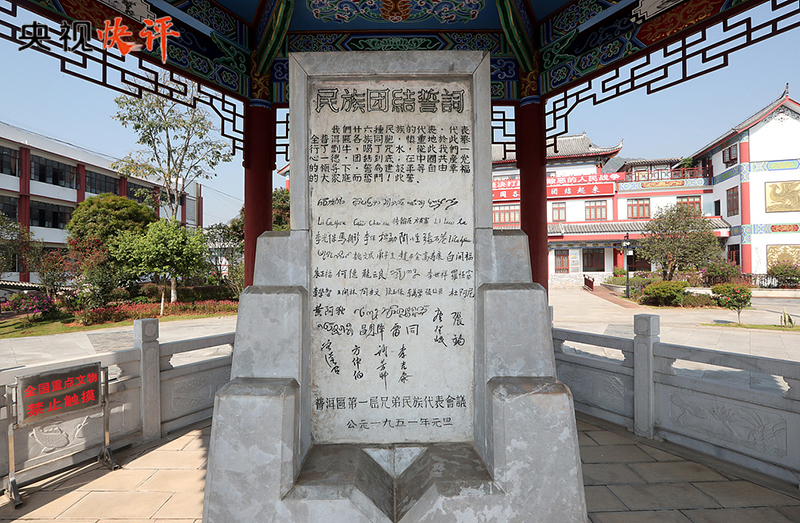 普洱民族團(tuán)結(jié)誓詞碑被譽(yù)為“新中國民族團(tuán)結(jié)第一碑”。1950年,云南普洱專區(qū)各族代表應(yīng)邀到北京參加新中國成立一周年慶?;顒樱艿矫珴蓶|等黨和國家領(lǐng)導(dǎo)人親切接見。1951年元旦,普洱專區(qū)各族群眾舉行盟誓大會,以少數(shù)民族的風(fēng)俗習(xí)慣立下誓詞碑。盟誓立碑后,各民族兄弟姐妹用實(shí)際行動踐行“一心一德跟黨走”的錚錚誓言,推動邊疆地區(qū)經(jīng)濟(jì)社會發(fā)展取得了歷史性成就,書寫了民族團(tuán)結(jié)進(jìn)步生動篇章。