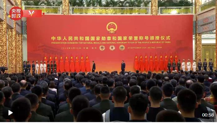 中華人民共和國(guó)國(guó)家勛章和國(guó)家榮譽(yù)稱號(hào)頒授儀式9月29日上午10時(shí)在人民大會(huì)堂隆重舉行。中共中央總書(shū)記、國(guó)家主席、中央軍委主席習(xí)近平向“人民教育家”國(guó)家榮譽(yù)稱號(hào)獲得者張晉藩頒授獎(jiǎng)?wù)隆?/p>