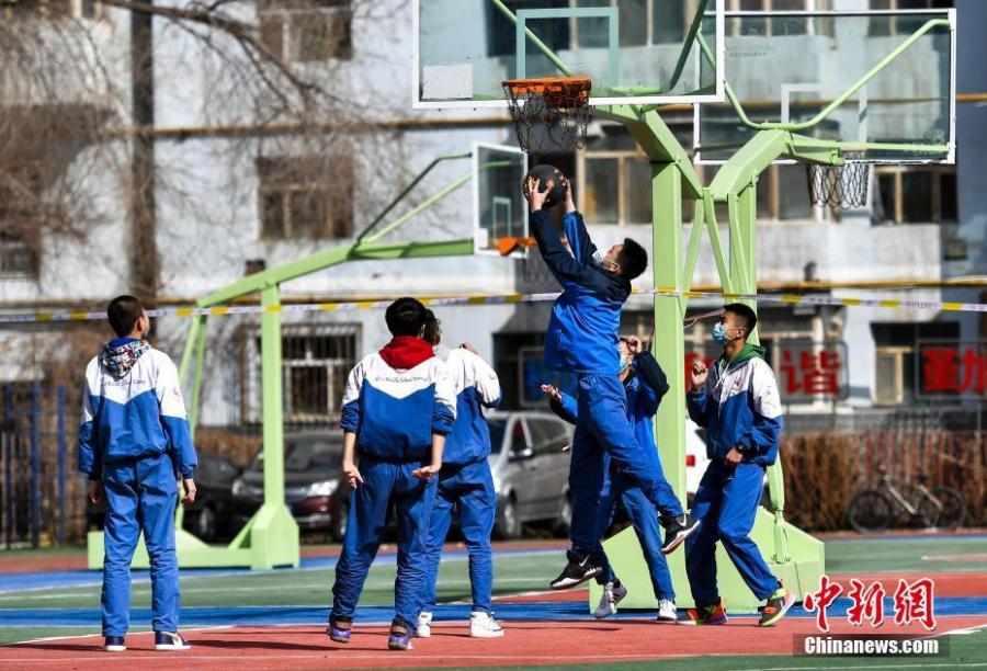 資料圖:初中生在課間休息時(shí)打籃球。中新社記者 劉新 攝