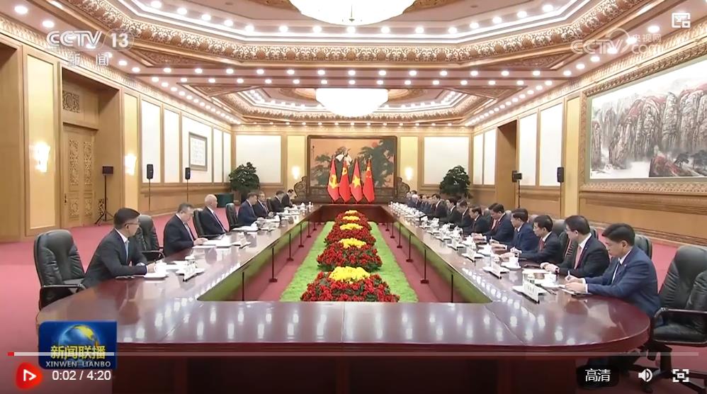 習(xí)近平指出,堅(jiān)持共產(chǎn)黨領(lǐng)導(dǎo)和社會(huì)主義制度是中越兩國(guó)最本質(zhì)的特征,也是發(fā)展中越關(guān)系最堅(jiān)實(shí)的政治基礎(chǔ)。中方將越南視為周邊外交的優(yōu)先方向,愿同越方一道,在深化高水平互利合作上走在前列,在維護(hù)國(guó)際公平正義上走在前列,在推動(dòng)人類進(jìn)步事業(yè)上走在前列,攜手構(gòu)建具有戰(zhàn)略意義的中越命運(yùn)共同體。