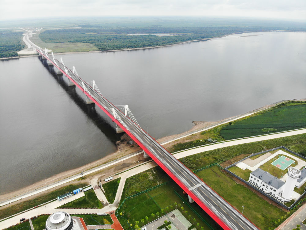 這是在中國黑河一側(cè)拍攝的黑河-布拉戈維申斯克公路橋(2023年8月11日攝,無人機(jī)照片)。2022年6月10日,這座中俄首座跨黑龍江公路大橋正式通車,在中國東北地區(qū)和俄羅斯遠(yuǎn)東地區(qū)之間開辟了新的國際運(yùn)輸通道。