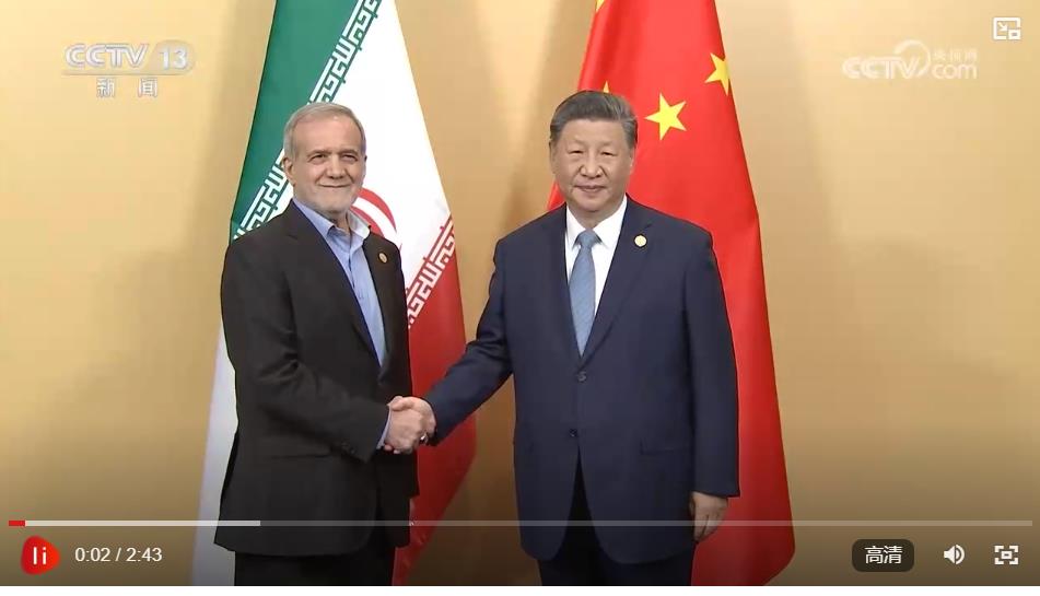 習近平祝賀并歡迎伊朗首次作為正式成員參加金磚國家領導人會晤,指出中方愿同伊方在金磚等多邊框架內加強合作,進一步提升全球南方的影響力和發(fā)言權,推動國際秩序朝著更加公正合理的方向發(fā)展。