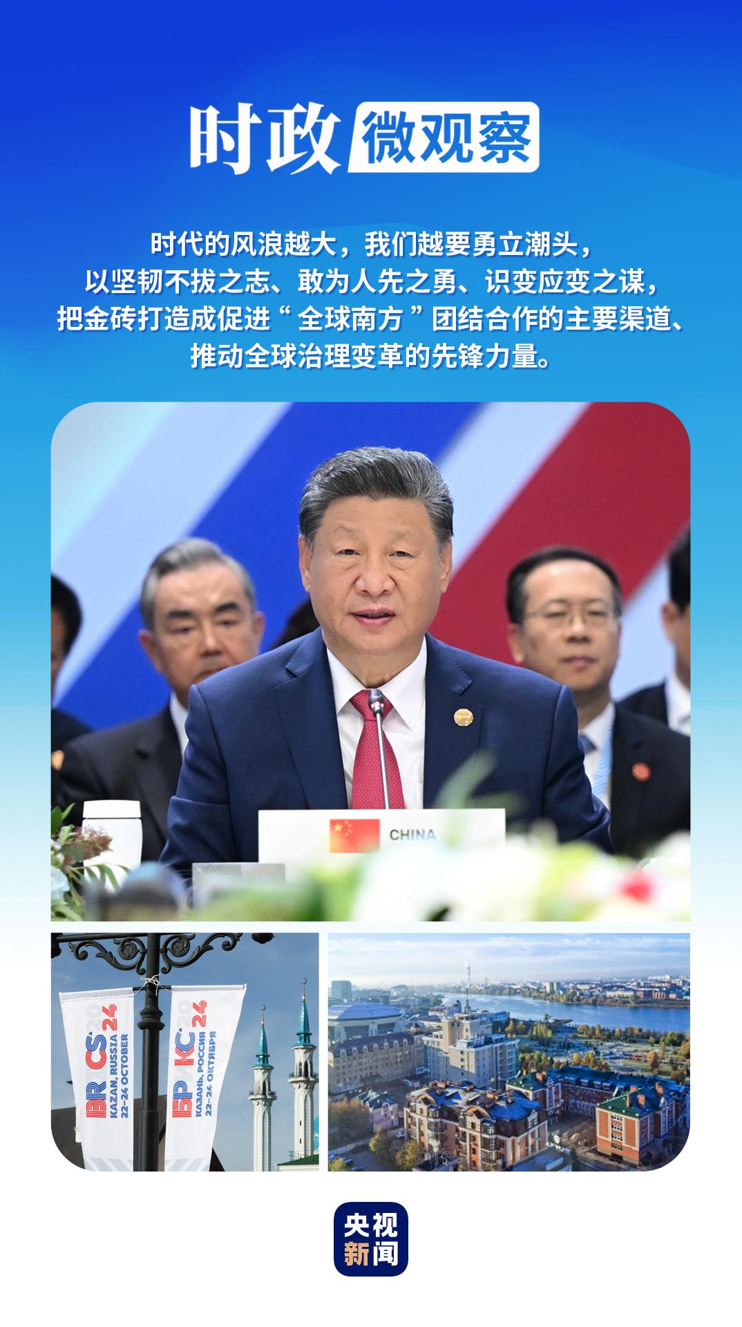 喀山之行的一系列密集活動中,習(xí)近平主席深刻闡釋“精神力量”與“挺膺擔(dān)當(dāng)”,為開創(chuàng)“大金磚合作”高質(zhì)量發(fā)展新局面引領(lǐng)航向。《時政微觀察》為你解讀。