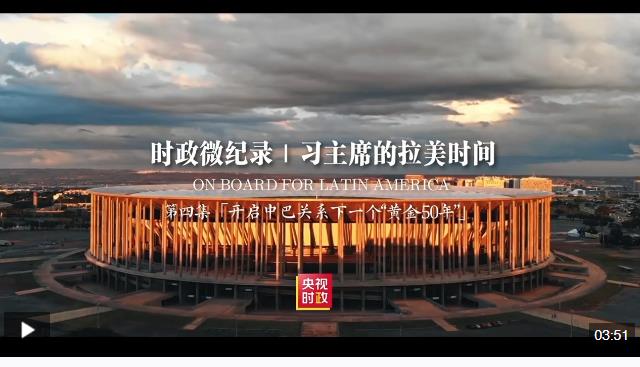 訪問期間,兩國元首宣布,將中巴關(guān)系定位提升為攜手構(gòu)建更公正世界和更可持續(xù)星球的中巴命運共同體,同時將共建“一帶一路”倡議同巴西發(fā)展戰(zhàn)略對接。走過50年,中巴關(guān)系處于歷史最好時期;站在新的起點,東西半球這對“黃金搭檔”將命運與共、相互成就,攜手建設(shè)更加美好的世界。