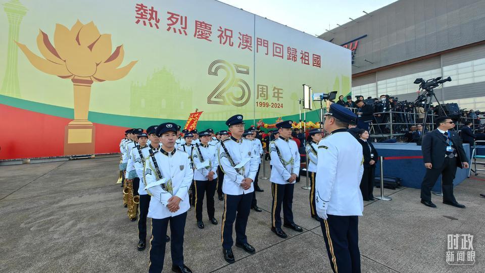 △澳門警察樂隊(duì)靜候習(xí)主席到來(lái)。(總臺(tái)央視記者段德文拍攝)