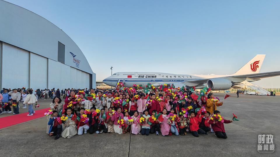 △習(xí)主席專機(jī)抵達(dá)澳門國(guó)際機(jī)場(chǎng)。(總臺(tái)央視記者王子杭拍攝)