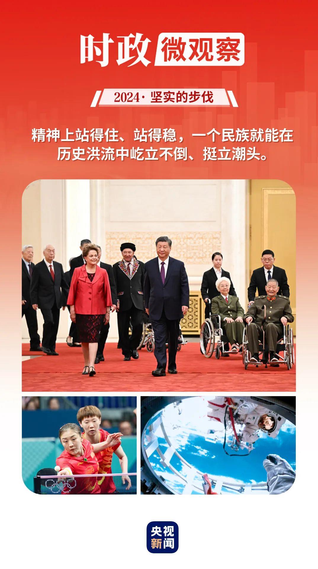 回望2024年,黨的二十屆三中全會標(biāo)記下改革開放進(jìn)程又一重要?dú)v史性時(shí)刻;我們熱烈慶祝中華人民共和國成立75周年 、澳門回歸祖國25周年,匯聚砥礪前行的強(qiáng)大力量;中國體育代表團(tuán)取得夏季奧運(yùn)會境外參賽最好成績,生動詮釋了新時(shí)代中國精神;太空遨游、智能迭代、長橋飛渡、巨輪啟航,中國的創(chuàng)新動力、發(fā)展活力勃發(fā)奔涌……中國人民更加自信自強(qiáng),奮斗精神更加昂揚(yáng)。