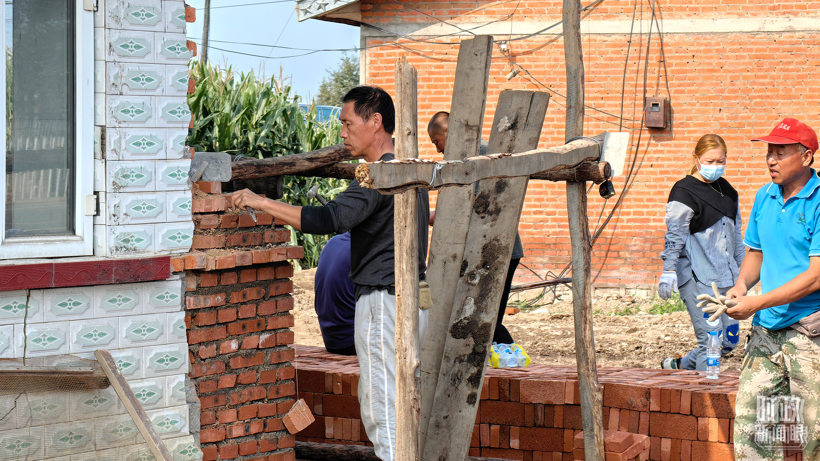 2023年9月,黑龍江龍王廟村村民在修繕在洪水中受損的房屋。(總臺(tái)央廣記者潘毅拍攝)