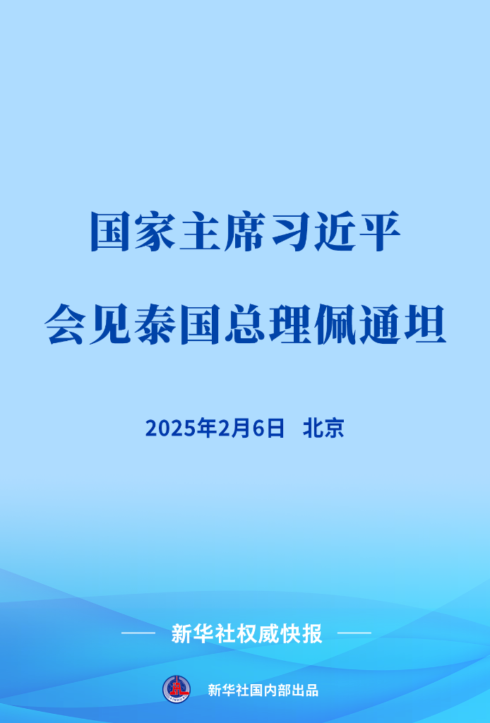 2月6日上午,國家主席習(xí)近平在北京人民大會(huì)堂會(huì)見來華進(jìn)行正式訪問的泰國總理佩通坦。