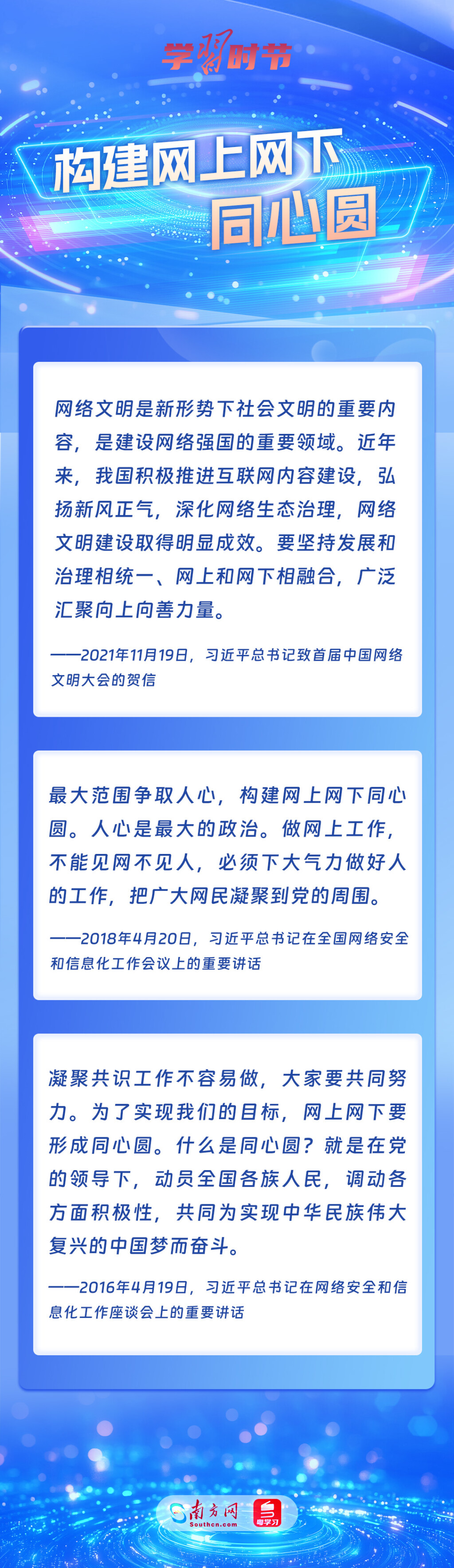 黨的十八大以來,習近平總書記從信息化發(fā)展大勢和國內(nèi)國際大局出發(fā),就網(wǎng)絡安全和信息化工作提出一系列具有開創(chuàng)性意義的新理念新思想新戰(zhàn)略,形成了習近平總書記關于網(wǎng)絡強國的重要思想。其中,有不少生動形象的表述,深入人心,發(fā)人深省,讓我們一起學習。