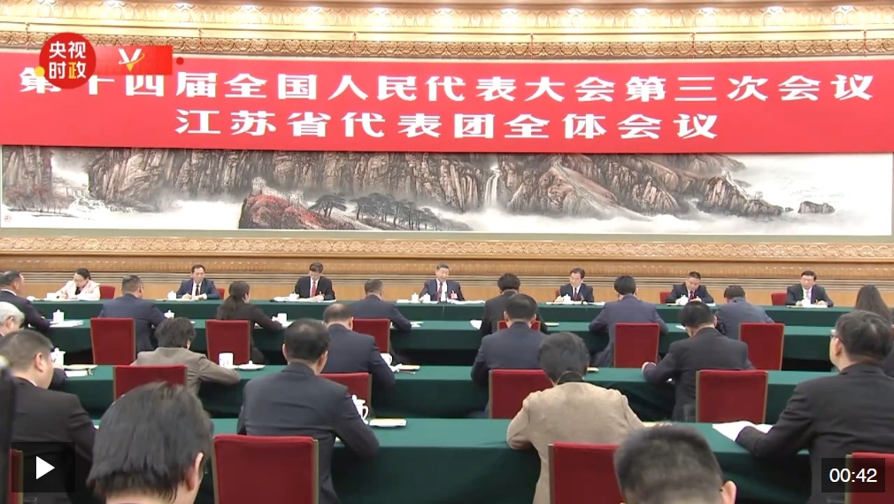 5日下午,中共中央總書記、國家主席、中央軍委主席習近平參加他所在的十四屆全國人大三次會議江蘇代表團審議。