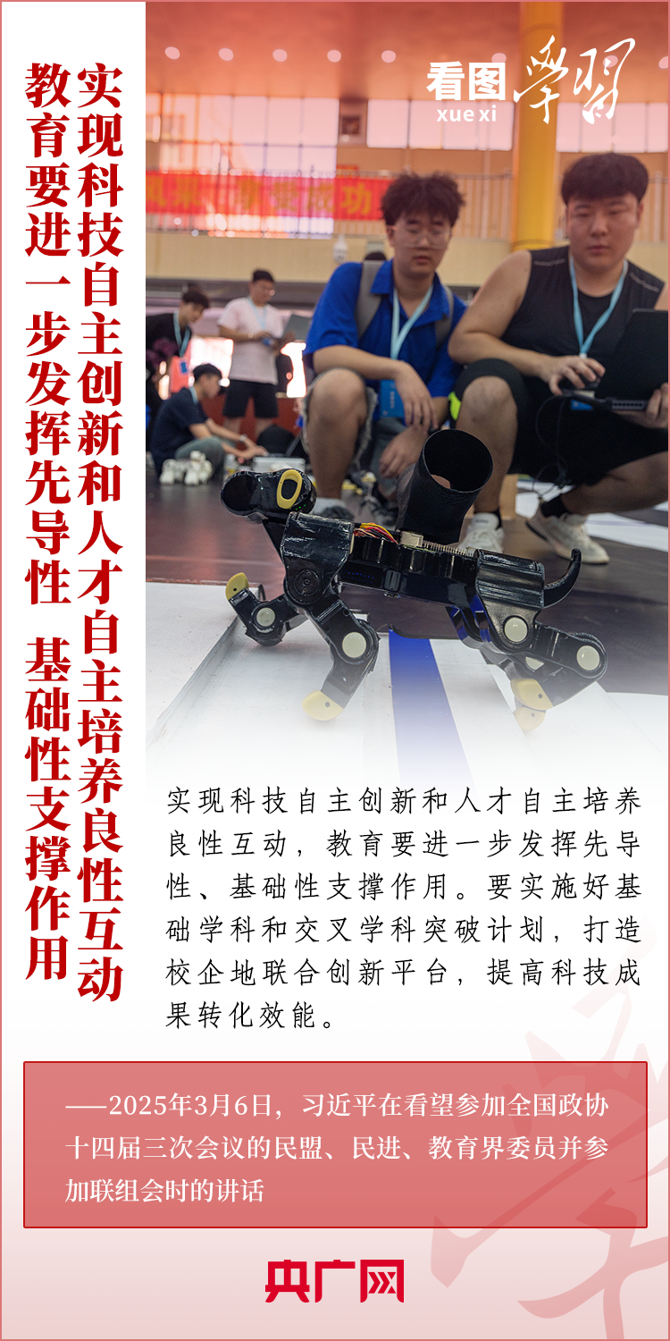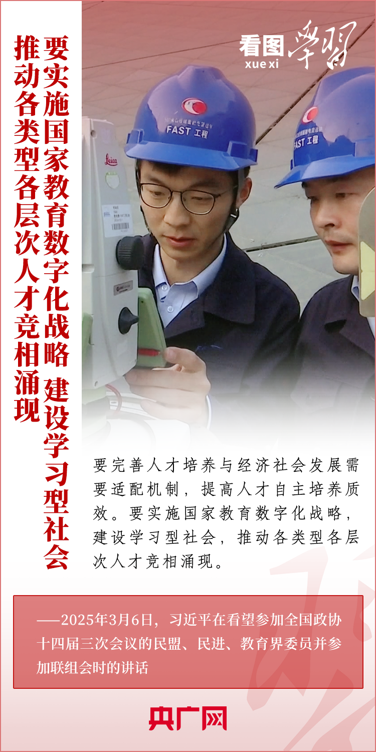 “建設(shè)教育強(qiáng)國、科技強(qiáng)國、人才強(qiáng)國,是全黨全社會(huì)的共同責(zé)任?!?月6日,習(xí)近平總書記在看望參加全國政協(xié)十四屆三次會(huì)議的民盟、民進(jìn)、教育界委員并參加聯(lián)組會(huì)時(shí)發(fā)表重要講話??倳浘妥龊媒逃?、科技、人才工作作出深刻闡釋,強(qiáng)調(diào)必須深刻把握中國式現(xiàn)代化對(duì)教育、科技、人才的需求,強(qiáng)化教育對(duì)科技和人才的支撐作用,進(jìn)一步形成人才輩出、人盡其才、才盡其用的生動(dòng)局面。一起來學(xué)習(xí)!