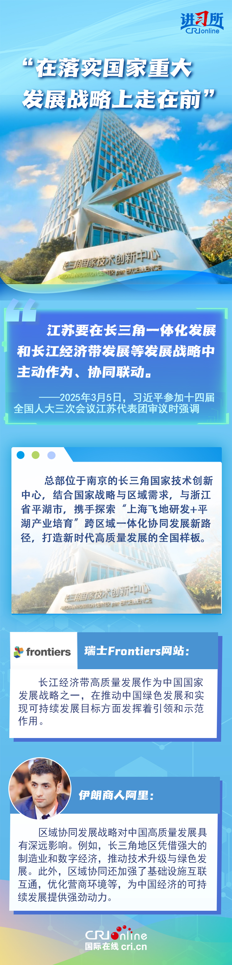 從紫金山實(shí)驗(yàn)室的6G突破到蘇州工業(yè)園區(qū)的開放升級,從長三角協(xié)同創(chuàng)新到永聯(lián)村的共富實(shí)踐,江蘇在中國式現(xiàn)代化新實(shí)踐上已成為世界觀察中國高質(zhì)量發(fā)展的重要窗口。國際人士認(rèn)為,中國因地制宜的創(chuàng)新發(fā)展之路有力推動了國家現(xiàn)代化進(jìn)程與民生福祉提升。