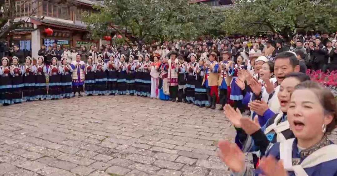 3月19日,云南麗江古城各族群眾熱情歡迎習近平總書記。
