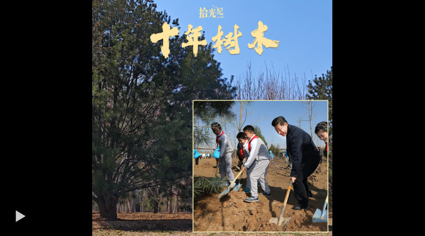 十年前,習近平總書記種下的白皮松如今已亭亭如蓋。2025年4月3日,擔任黨的總書記以來,習近平第十三次參加首都義務植樹活動。十年樹木百年樹人,義務植樹要一代接著一代干下去。