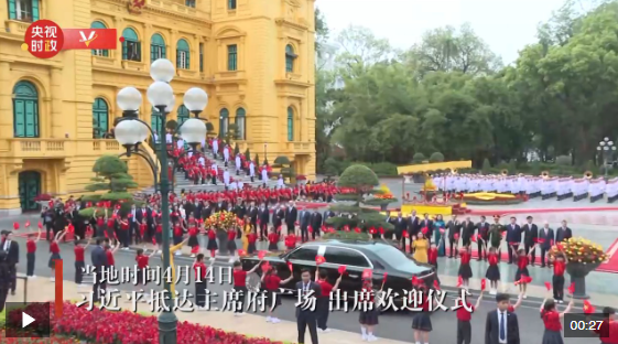 4月14日,中共中央總書記、國家主席習(xí)近平抵達(dá)河內(nèi)對越南進(jìn)行國事訪問。當(dāng)日下午,越共中央總書記蘇林為習(xí)近平舉行隆重歡迎儀式。