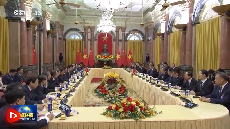 習(xí)近平強(qiáng)調(diào),中越雙方要以中越友好合作的穩(wěn)定性和社會主義制度的優(yōu)越性應(yīng)對外部形勢的不確定性,推動中越命運(yùn)共同體航船沿著正確航道破浪前行。政治上要把住前行之舵,保持高層戰(zhàn)略溝通,加強(qiáng)治黨治國經(jīng)驗(yàn)互學(xué)互鑒,共同提高黨的領(lǐng)導(dǎo)能力,攜手走穩(wěn)走好各自社會主義道路。安全上要鑄牢團(tuán)結(jié)之錨,以兩國外交、國防、公安“3+3”戰(zhàn)略對話機(jī)制升格為契機(jī),持續(xù)深化防務(wù)和執(zhí)法安全合作,中方支持越方籌備好越共十四大,支持越方維護(hù)國家主權(quán)、安全、發(fā)展利益。經(jīng)濟(jì)上要執(zhí)穩(wěn)合作之楫,加強(qiáng)發(fā)展戰(zhàn)略對接,落實(shí)好共建“一帶一路”倡議和“兩廊一圈”框架對接合作規(guī)劃,深化鐵路、公路、航空多維互聯(lián)互通,保障產(chǎn)業(yè)鏈供應(yīng)鏈穩(wěn)定暢通,拓展5G、人工智能、綠色發(fā)展等新興領(lǐng)域合作,以新質(zhì)生產(chǎn)力賦能兩國全方位合作格局。人文上要揚(yáng)起友誼之帆,辦好今年“中越人文交流年”系列活動,實(shí)施更多“小而美”民生項(xiàng)目,通過文化、旅游、媒體、地方等交流,讓中越友好更加深入人心。