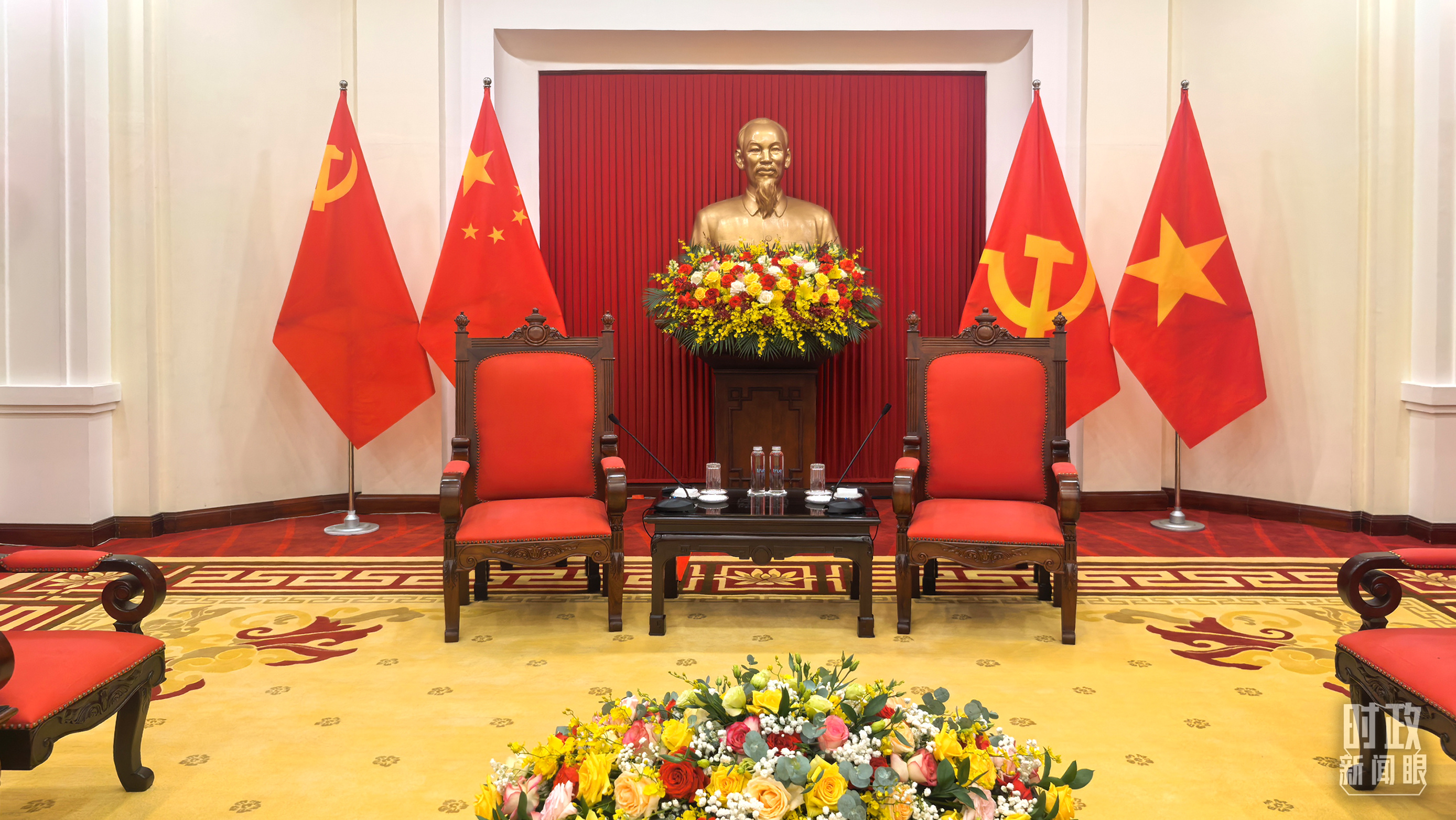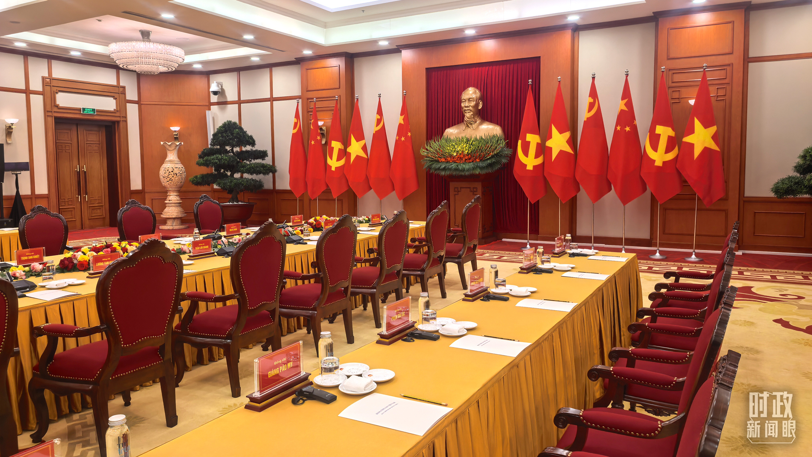 中越兩黨總書記會(huì)談開始前。(總臺(tái)央視記者劉琦拍攝)
