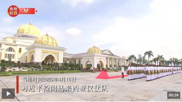 當?shù)貢r間4月16日上午,國家主席習近平檢閱馬來西亞儀仗隊。