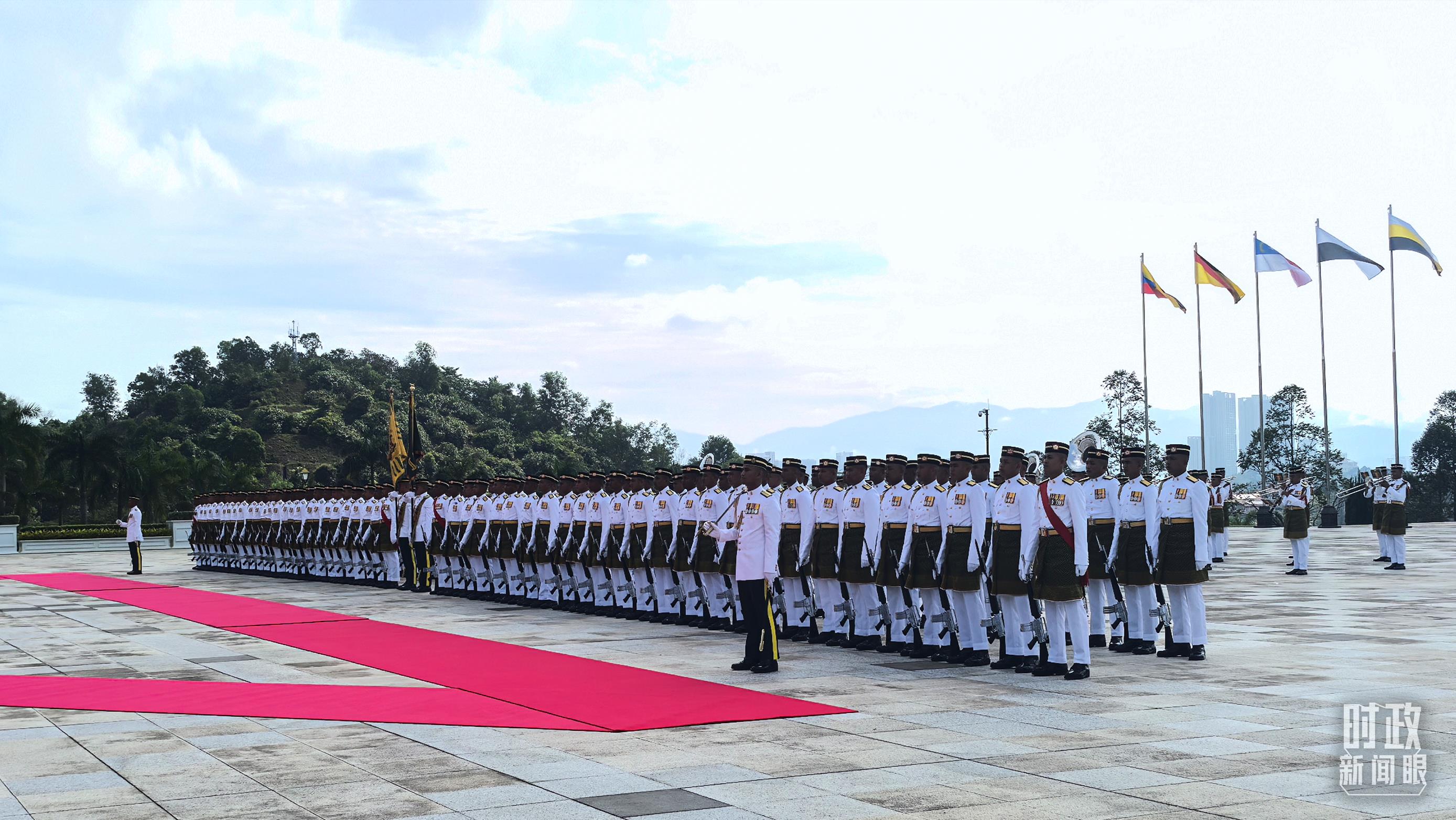 16日,馬來西亞最高元首易卜拉欣在國家王宮廣場為習(xí)主席舉行隆重歡迎儀式,隨后兩國元首舉行會見。安瓦爾總理全程陪同。