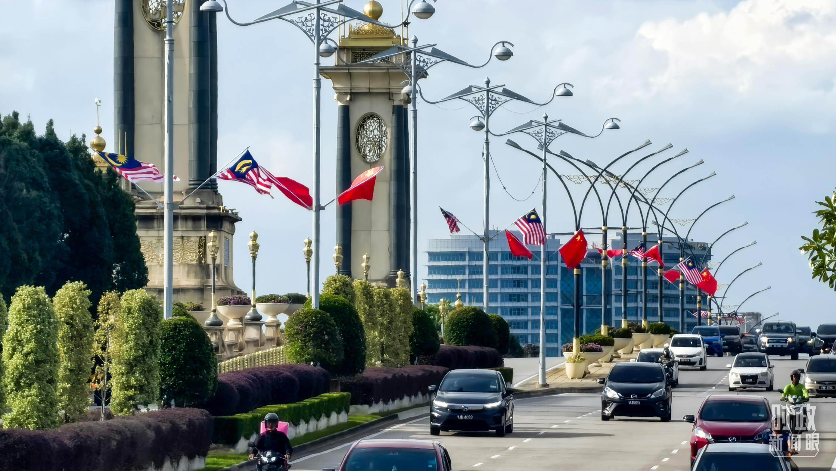 布特拉加亞街頭,中馬兩國國旗迎風(fēng)飄揚。(總臺央視記者劉岳拍攝)