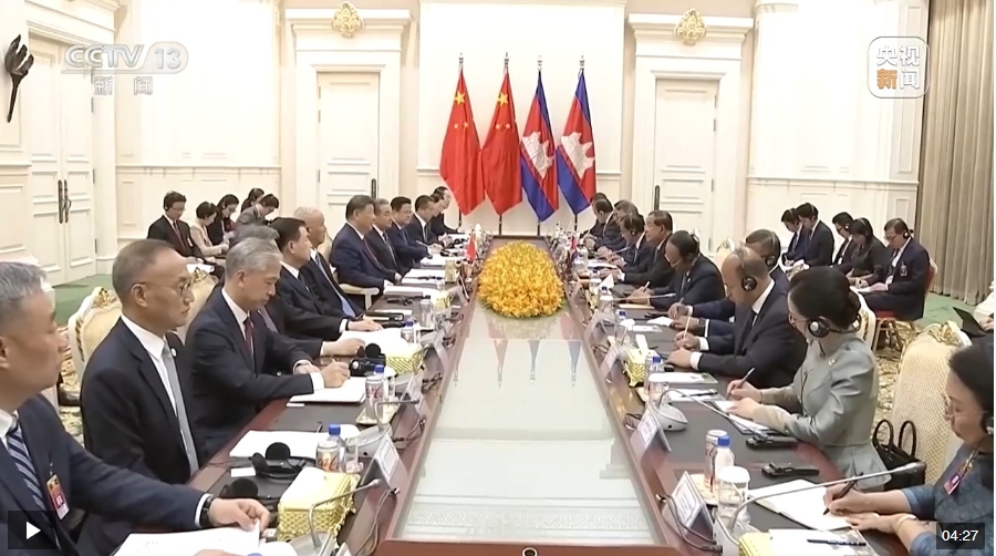 習(xí)近平指出,中柬兩國(guó)是友好鄰邦,更是鐵桿朋友。構(gòu)建中柬命運(yùn)共同體是歷史的選擇、人民的選擇。當(dāng)前,中柬兩國(guó)都處在國(guó)家發(fā)展的關(guān)鍵階段,雙方要心系人民福祉,胸懷人類進(jìn)步,在推進(jìn)各自現(xiàn)代化進(jìn)程中,為構(gòu)建人類命運(yùn)共同體樹立典范,攜手做世界百年變局中的和平力量、穩(wěn)定力量、進(jìn)步力量。