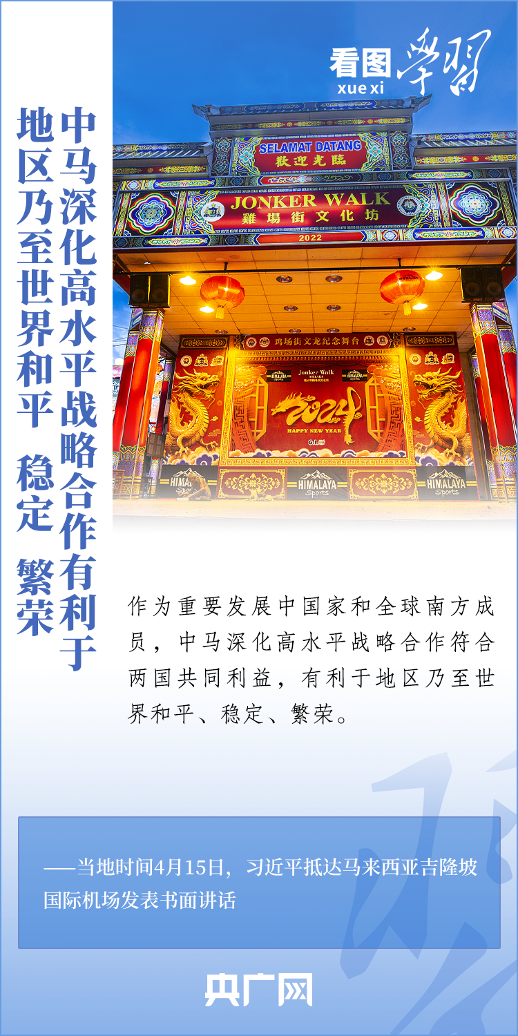 “中國(guó)和馬來(lái)西亞是好鄰居、好朋友、好伙伴,常來(lái)常往、親如一家?!?月15日至17日,國(guó)家主席習(xí)近平應(yīng)邀對(duì)馬來(lái)西亞進(jìn)行國(guó)事訪問(wèn)。訪問(wèn)期間,習(xí)主席高度評(píng)價(jià)中馬關(guān)系,就共同打造高水平戰(zhàn)略性中馬命運(yùn)共同體,譜寫睦鄰友好、團(tuán)結(jié)合作新篇章,開啟中馬關(guān)系新的“黃金50年”擘畫藍(lán)圖和愿景。一起來(lái)學(xué)習(xí)!