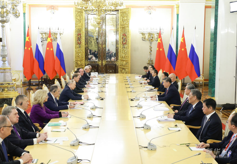 當?shù)貢r間5月8日上午,俄羅斯總統(tǒng)普京同中國國家主席習近平在莫斯科克里姆林宮舉行會談。