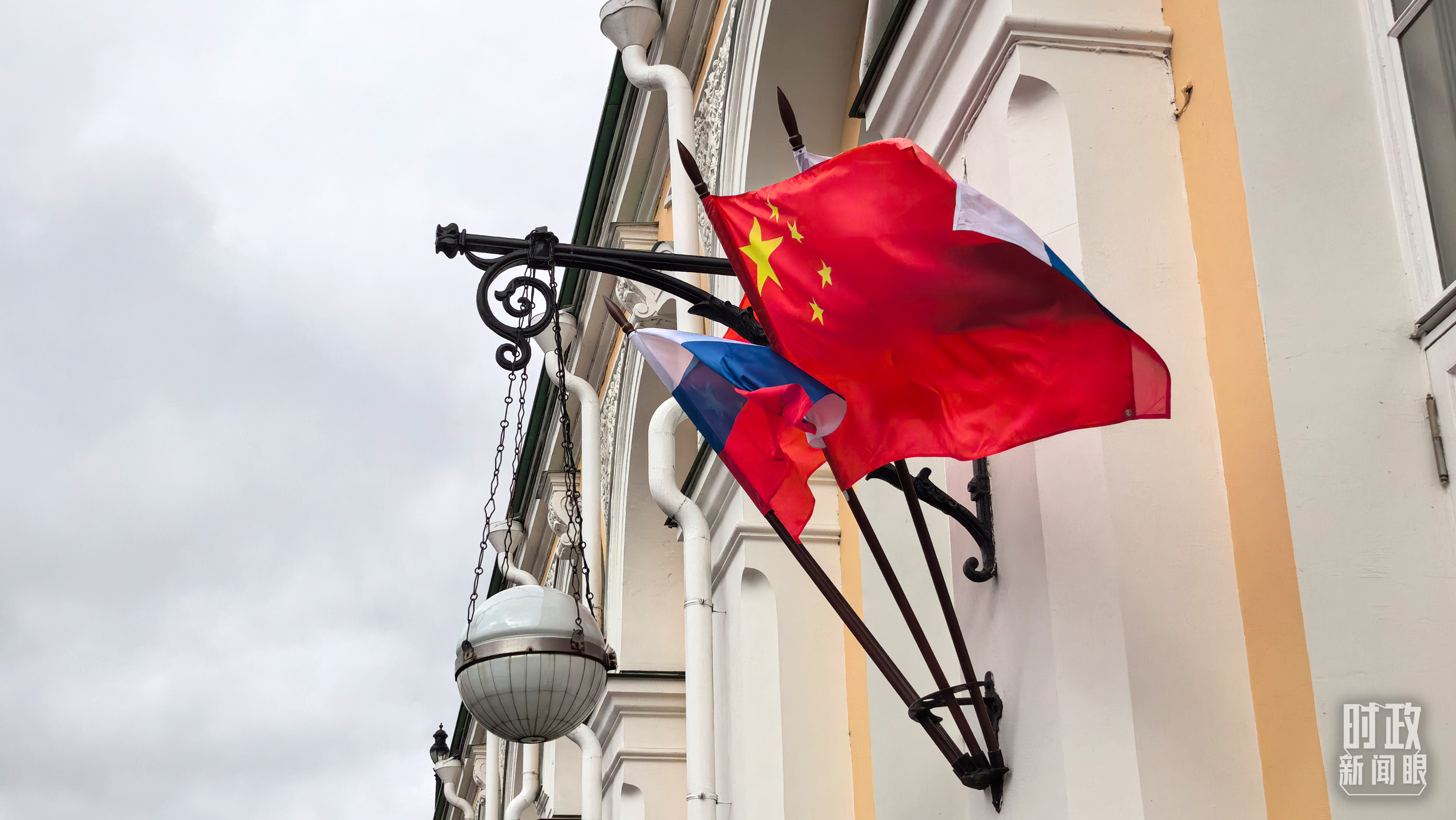 下車處懸掛的中俄兩國(guó)國(guó)旗。(總臺(tái)央視記者劉琦拍攝)