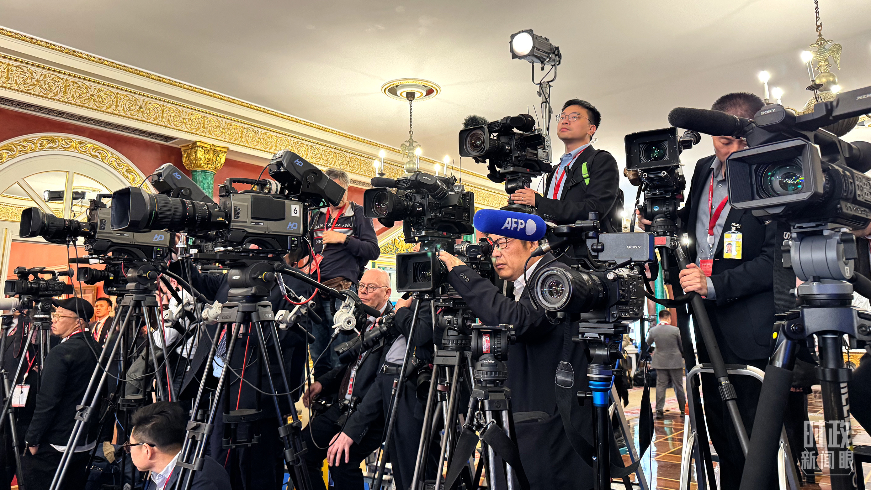 等待中俄兩國(guó)元首共見(jiàn)記者的中外媒體同仁。(總臺(tái)央視記者陸泓宇、蔣碩拍攝)