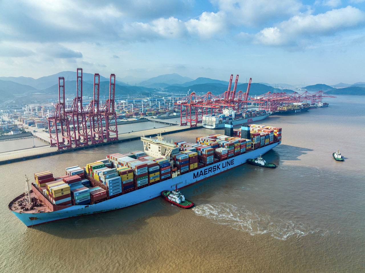 集裝箱船靠泊寧波舟山港穿山港區(qū)。拍友 湯健凱 攝