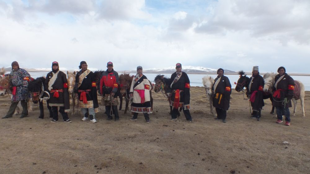 部分長江源村生態(tài)管護員在巡護的草原上合影。(受訪者供圖)