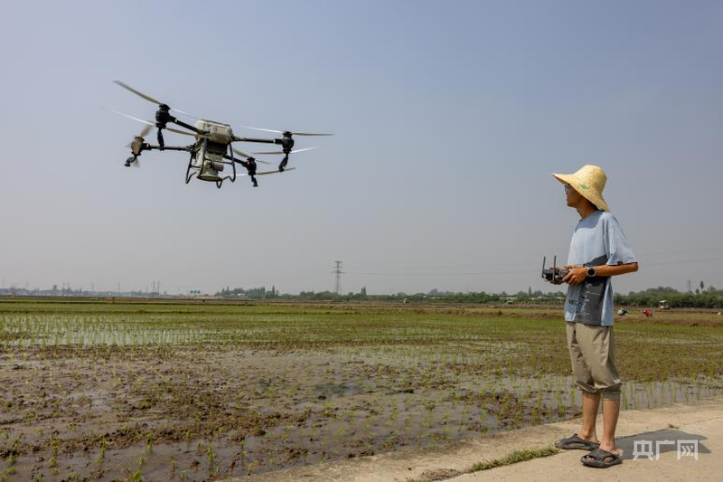新農人王海聰正在操控植保無人機(央廣網(wǎng)發(fā) 侯建明 攝)
