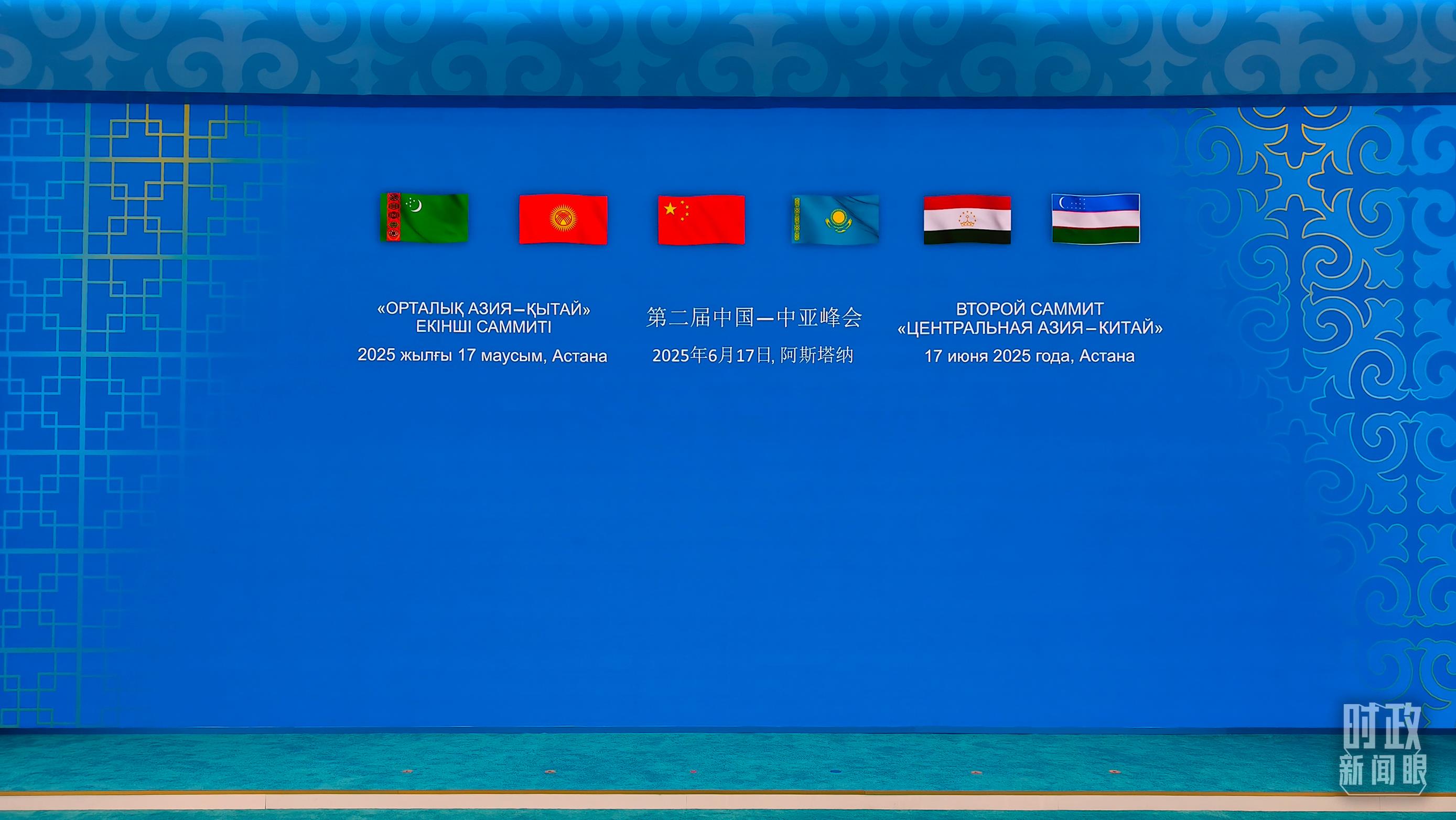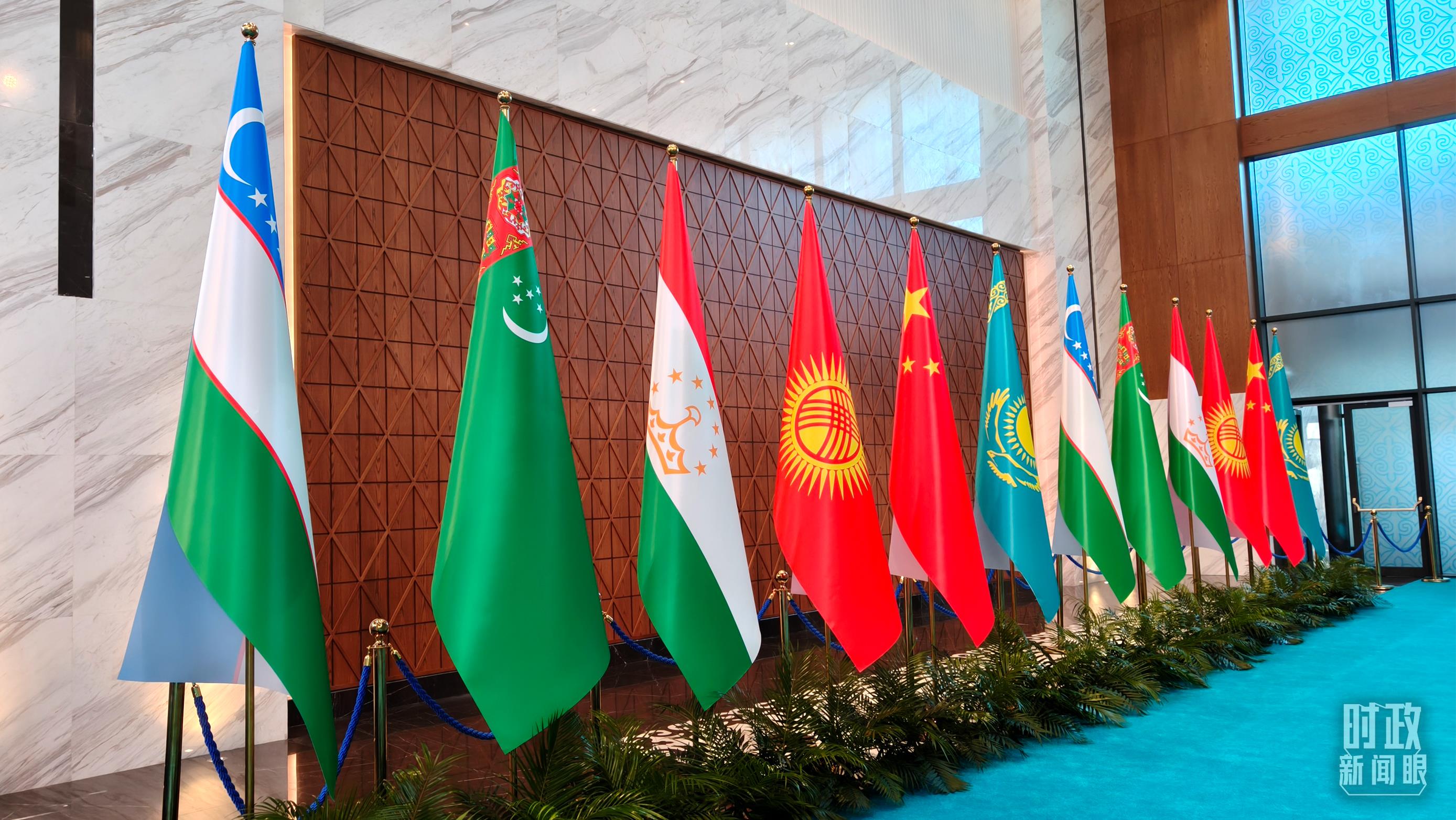 當?shù)貢r間6月17日下午,阿斯塔納獨立宮前,各國旗幟迎風飄揚。習近平主席和中亞五國元首步入會場,集體合影后,六國元首圍坐圓桌前,共同擘畫中國—中亞機制發(fā)展的新藍圖。