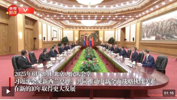6月20日上午,國家主席習近平在北京人民大會堂會見來華進行正式訪問的新西蘭總理拉克森。