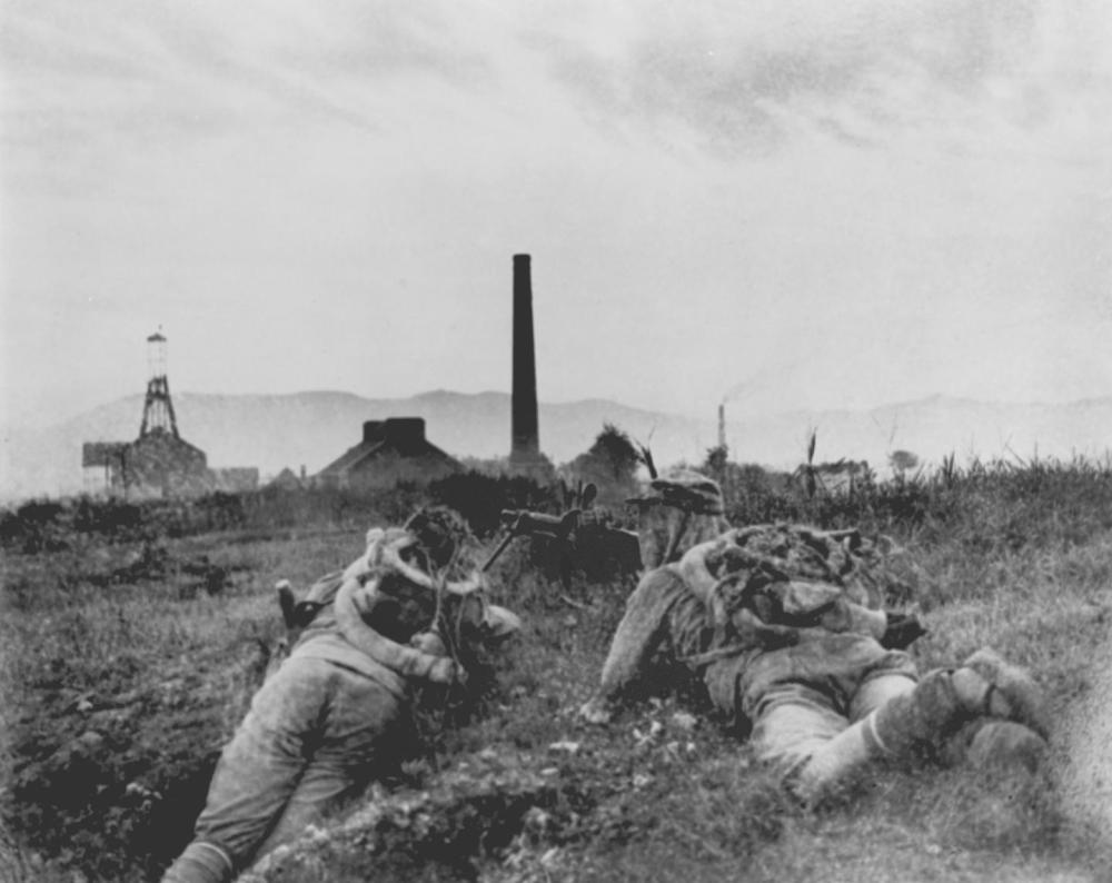 百團(tuán)大戰(zhàn)第一階段以破襲正太鐵路為重點(diǎn),陽泉位于其“咽喉”部位,成為第一階段的主戰(zhàn)場。這是在山西獅腦山血戰(zhàn)中的我軍機(jī)槍陣地。