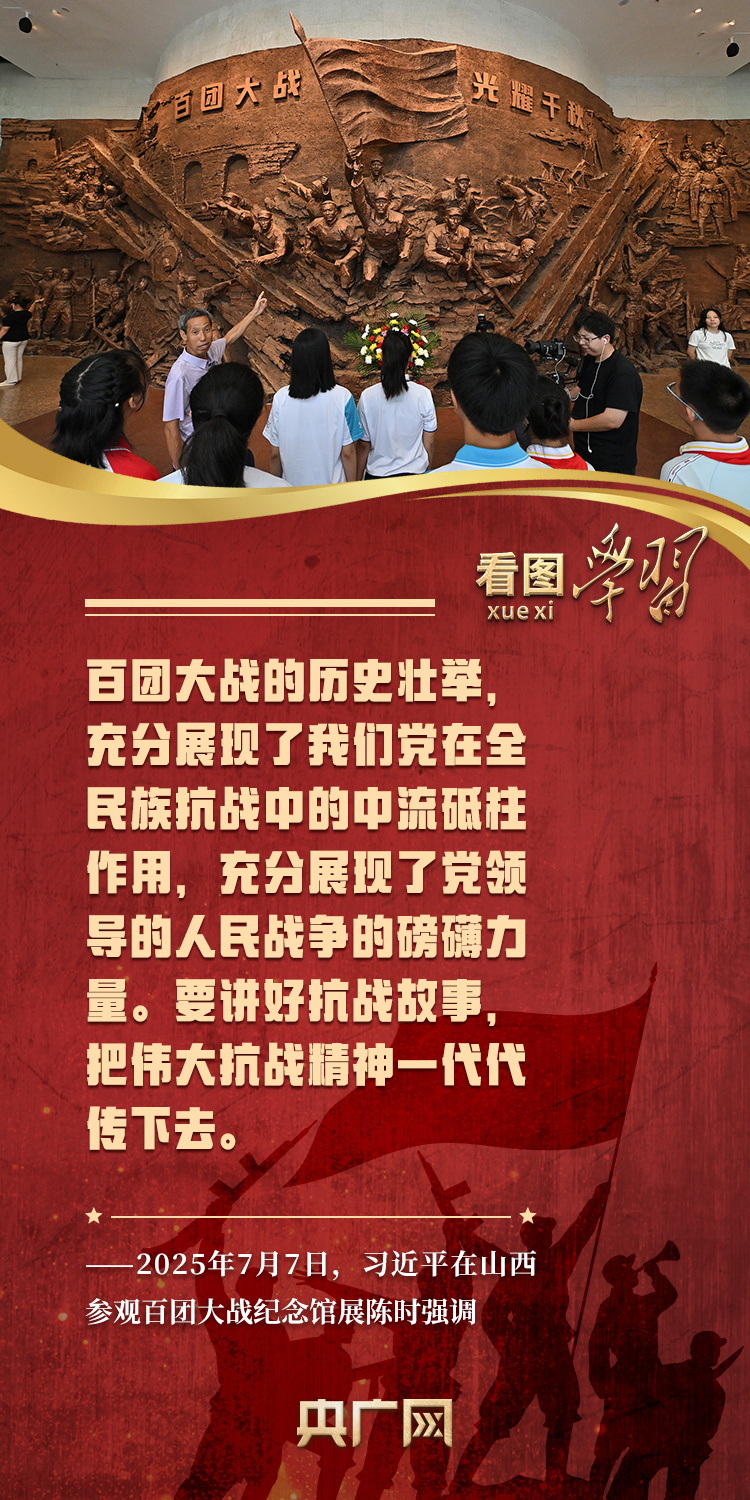 “要講好抗戰(zhàn)故事,把偉大抗戰(zhàn)精神一代代傳下去?!秉h的十八大以來,習近平總書記在地方考察調(diào)研時,多次到具有重大歷史意義的革命圣地、紅色舊址、歷史紀念場所等緬懷革命先烈,重溫崢嶸歲月,深刻闡釋歷史啟迪。今年是中國人民抗日戰(zhàn)爭暨世界反法西斯戰(zhàn)爭勝利80周年,《看圖學習》邀您一起跟隨總書記的腳步,共同緬懷抗戰(zhàn)先烈的豐功偉績,繼承和弘揚偉大抗戰(zhàn)精神,為強國建設(shè)、民族復(fù)興作出我們的新貢獻。