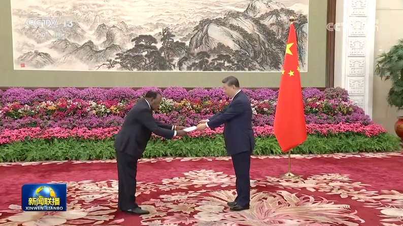 7月25日上午,國家主席習近平在北京人民大會堂接受16位駐華大使遞交國書。
