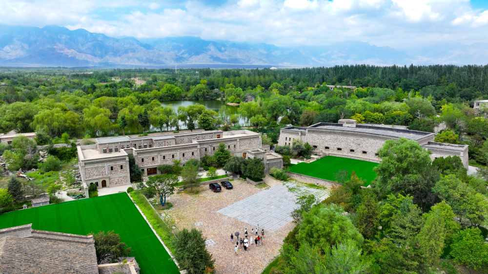 游客在寧夏銀川市西夏區(qū)鎮(zhèn)北堡鎮(zhèn)源石酒莊游玩(無人機照片,2024年8月7日攝)。新華社記者 馮開華 攝